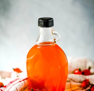 Envision a jar of glowing amber liquid, thick and velvety, ready to drizzle over pancakes or stir into hot water for an instant remedy. This syrup captures the essence of autumn's harvest, preserving rose hips' vitality to sustain you through winter's depths with its rich, fruity tang softened by natural sweetness.