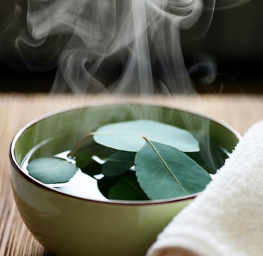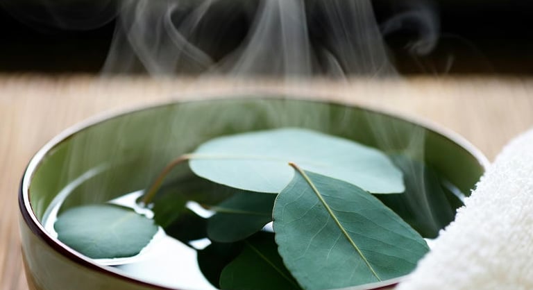 Eucalyptus Steam Inhalation: Add 3–5 drops eucalyptus oil to a bowl of hot water, inhale steam under a towel for 5 minutes.