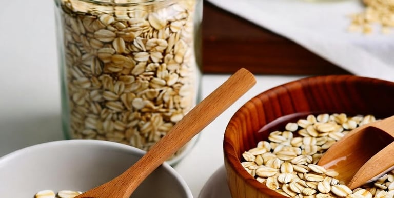 Oatmeal Scrub: Combine 1 tablespoon ground oats with 1 teaspoon olive oil. Gently scrub dry skin for exfoliation.