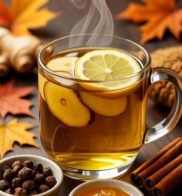 This warm, aromatic tea is a cozy ritual for chilly evenings, blending myrrh's immune-enhancing properties with ginger, honey, and a touch of cinnamon for a comforting, health-boosting sip that fights off winter sniffles and warms you from the inside out.